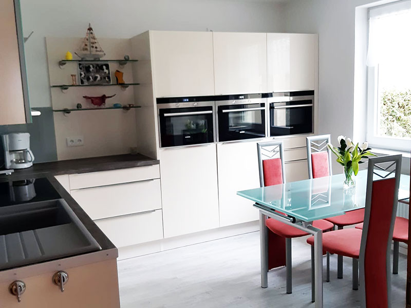 - einer großen, modern und voll eingerichteten Wohnküche (Markengeräte von Siemens)